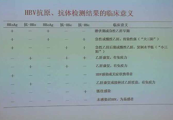乙型肝炎病毒(HBV)在我國(guó)感染人群較高,主要傳播途徑:母嬰傳播、性傳播、吸毒、輸血等。臨床潛伏期45-160天,平均為90天,乙肝炎病毒(HBV)一旦被感染,臨床治愈率較低,該病毒在體內(nèi)有極強(qiáng)的復(fù)制能力,而耐藥性強(qiáng),在臨床治療上過(guò)程較長(zhǎng)。乙肝五項(xiàng)是在我們的生活中經(jīng)常會(huì)檢查到的體檢項(xiàng)目,它對(duì)于檢查人體有無(wú)感染乙肝病毒起到關(guān)鍵性的作用。但是在拿到檢查結(jié)果,很多人對(duì)于乙肝五項(xiàng)結(jié)果分析卻不是很明白。怎樣看化驗(yàn)單,觀察治療效果,下面有一張檢驗(yàn)乙肝五項(xiàng)的結(jié)果圖表,武安市中醫(yī)院檢驗(yàn)科來(lái)教教大家怎樣看乙肝五項(xiàng)的結(jié)果分析。