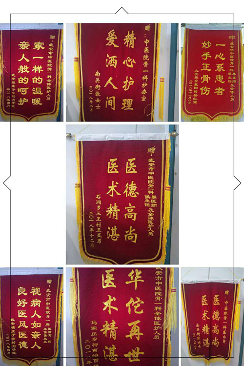 一面面榮譽(yù)的錦旗,一封封熱情洋溢的感謝信,一塊塊金色的牌匾,一張張幸福的微笑,一幕幕真誠的服務(wù)……這一幅幅溫馨、感動的畫面,看到的是醫(yī)患之間彼此的真誠與和諧。同時,也是對市中醫(yī)院醫(yī)護(hù)人員不分晝夜工作,犧牲節(jié)假日休息、無私奉獻(xiàn)得到的嘉獎。