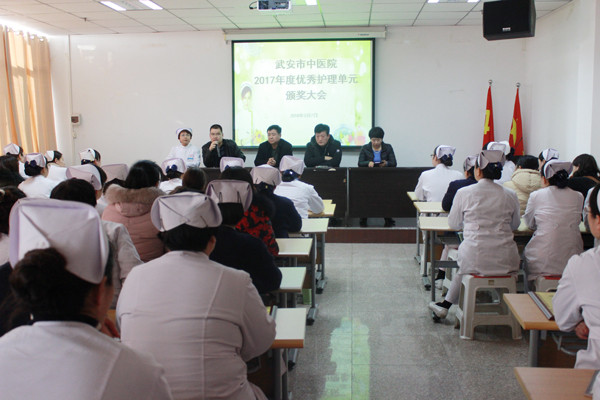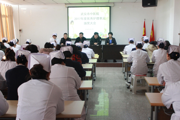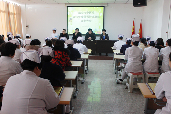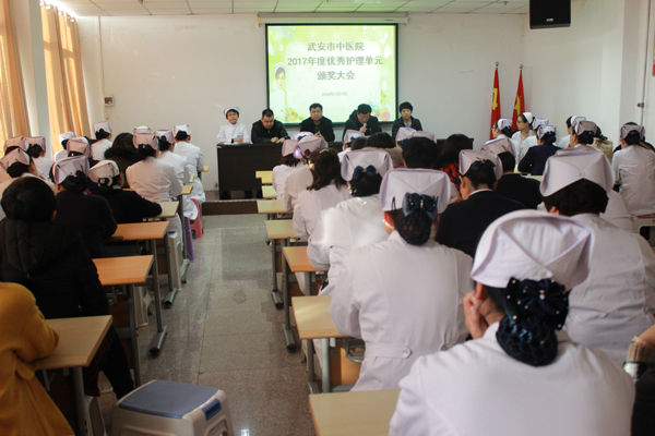 2018年2月7日,市中醫(yī)院護(hù)理部在三樓會(huì)議室隆重召開了2017年度優(yōu)秀護(hù)理單元頒獎(jiǎng)大會(huì)。市中醫(yī)院李學(xué)平院長、白志華副院長、孔麗霞副院長、郭占英副院長與來自全院各科室共110余名護(hù)士參加了會(huì)議。大會(huì)由郭占英副院長主持。