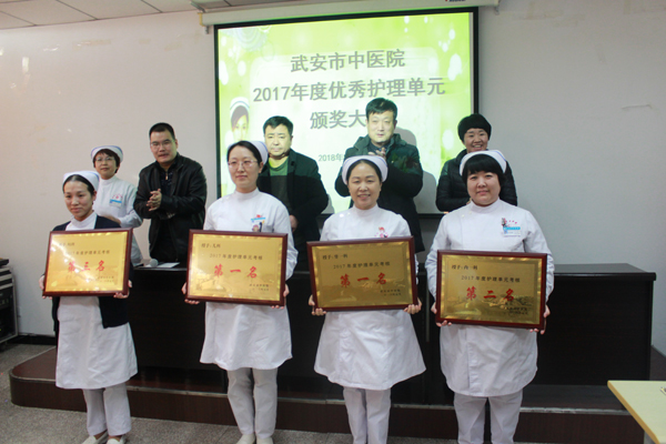 其次由白志華副院長宣讀獲獎(jiǎng)的優(yōu)秀護(hù)理單元。第一名獲獎(jiǎng)的優(yōu)秀護(hù)理單元是兒科和骨一科,第二名獲獎(jiǎng)的是內(nèi)一科,第三名獲獎(jiǎng)的是婦科。院領(lǐng)導(dǎo)分別向獲獎(jiǎng)的優(yōu)秀護(hù)理單元進(jìn)行表彰和頒獎(jiǎng)。