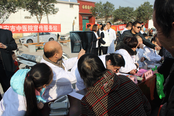 11月15日,市政協(xié)聯(lián)合衛(wèi)生、科技、教育、農(nóng)牧、就業(yè)等五部門舉辦一年一度的“五下鄉(xiāng)”活動(dòng),市中醫(yī)院選派內(nèi)科、外科、婦科、兒科、康復(fù)科、腫瘤科骨干醫(yī)師以及政協(xié)委員白正學(xué)同志組成的義診團(tuán)隊(duì)參加此次活動(dòng),義診團(tuán)隊(duì)由副院長(zhǎng)翟利琴帶隊(duì)攜帶B超機(jī)、心電圖、血糖儀、血壓表、藥品和各種中醫(yī)藥宣傳手冊(cè)200余份宣傳為當(dāng)?shù)厝罕婇_(kāi)展免費(fèi)檢查服務(wù)。