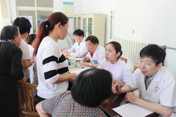 義診現(xiàn)場(chǎng),前來咨詢的群眾絡(luò)繹不絕,把醫(yī)生緊緊“包圍”在了中間,場(chǎng)面看似混亂,實(shí)則井井有條,每個(gè)醫(yī)生都各司其職,看病、檢查都分有專人進(jìn)行,獨(dú)立且又相互協(xié)作。炎熱的天氣并沒給醫(yī)護(hù)人員帶來絲毫的影響,他們認(rèn)真耐心的聆聽患者陳述病情;細(xì)致詳細(xì)的解答問題;專業(yè)全面的分析病情;反復(fù)嚴(yán)謹(jǐn)?shù)倪M(jìn)行查體;科學(xué)合理的指導(dǎo)用藥;準(zhǔn)確快速的量血壓、測(cè)血糖、做心電圖、B超等,這些場(chǎng)景構(gòu)成了一幅和諧醫(yī)患的美麗畫面。據(jù)統(tǒng)計(jì),共有140余人接受了常規(guī)體檢,同時(shí),發(fā)放各種宣傳資料360余份。