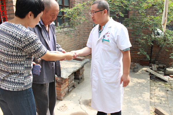 “太感謝你們了,你們免費(fèi)為俺村進(jìn)行檢查,還幫俺們辦理“惠民服務(wù)證”和“家庭醫(yī)生簽約服務(wù)”,以后有啥問(wèn)題,俺們能隨時(shí)去找你們。俺村還有幾戶孤寡老人,腿腳不便,聽(tīng)說(shuō)你們中醫(yī)院要來(lái),著急向你們咨詢(xún)類(lèi),我去把他們叫過(guò)來(lái)吧。”村委支書(shū)激動(dòng)地說(shuō)道。孔院長(zhǎng)一聽(tīng),連忙說(shuō)道:“不用了,他們腿腳不便,我們親自過(guò)去!贝逯(shū)首先把醫(yī)護(hù)人員領(lǐng)到一位80歲老人的家中。經(jīng)過(guò)詳談后得知,這位老人無(wú)子女,之前得過(guò)類(lèi)風(fēng)濕,導(dǎo)致腿腳走路不便!扒皫滋炀吐(tīng)說(shuō)中醫(yī)院要來(lái)義診,可惜我腿腳不便,要不早就去了,聽(tīng)說(shuō)中醫(yī)院要簽什么“家庭醫(yī)生服務(wù)”,我也想簽?zāi)。”這位老人興奮地說(shuō)?自洪L(zhǎng)詳細(xì)地為這位老人講解了惠民服務(wù)措施,并與這位老人簽訂了“家庭醫(yī)生簽約服務(wù)”和辦理“惠民服務(wù)證”。走之前,副院長(zhǎng)孔利霞往這位老人手里塞了200元現(xiàn)金,表示對(duì)孤寡老人的關(guān)心和關(guān)懷,這位老人手里攢著現(xiàn)金,感動(dòng)的泣不成聲。