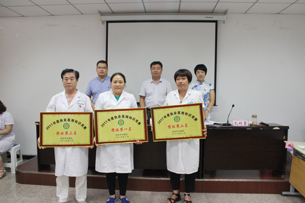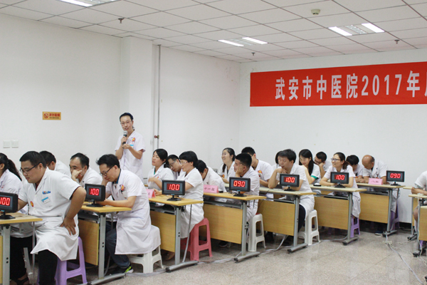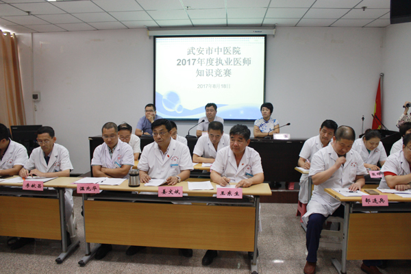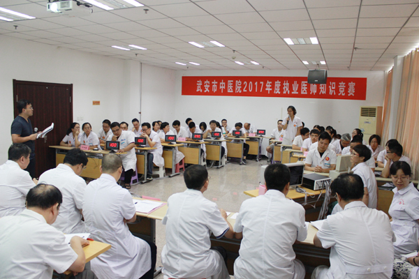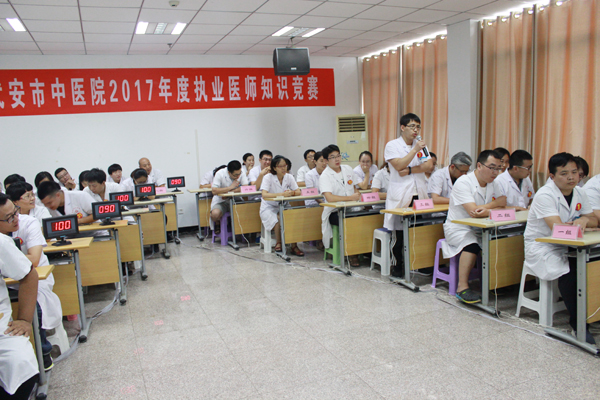 為增強(qiáng)醫(yī)生安全意識(shí)、質(zhì)量意識(shí)、防范意識(shí),最大限度地減少醫(yī)療安全隱患,打造平安和諧醫(yī)院。8月18日,武安市中醫(yī)院在三樓會(huì)議室舉辦執(zhí)業(yè)醫(yī)師知識(shí)競(jìng)賽活動(dòng),來(lái)自全院各病區(qū)的14支代表隊(duì)共42名參賽選手參與其中。賽程由副院長(zhǎng)孔利霞主持,院長(zhǎng)李學(xué)平做重要講話,領(lǐng)導(dǎo)班子成員全程觀看。