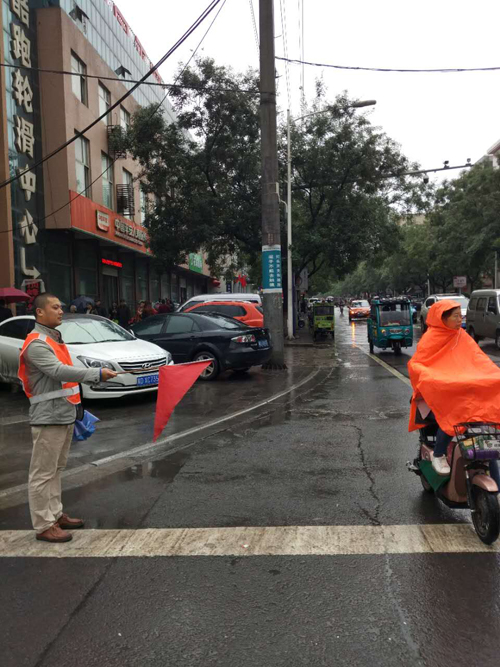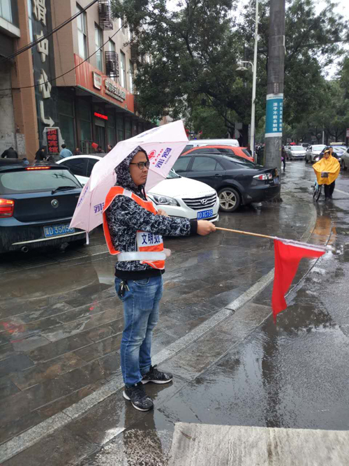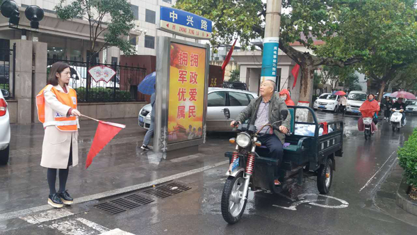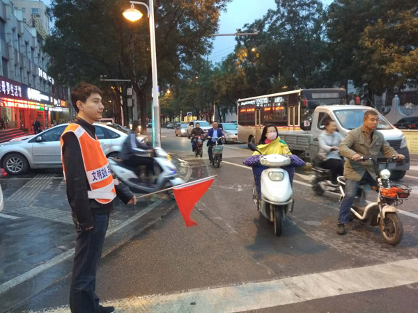 活動中,志愿者頭戴小紅帽、手持小紅旗、身穿印有“文明交通 與您同行”字樣的黃色馬甲嚴肅認真、各司其職,向過往行人宣傳交通法律法規(guī)和安全常識,引導行人走斑馬線,倡導非機動車文明出行,禁止在機動車道行駛和逆向行駛。天雖冷且下著雨,但是志愿者為了行人的安全出行,依然冒雨堅守崗位,給行人帶來安全、送去溫暖。通過此次文明交通活動,讓更多行人和非機動車各行其道、文明出行。