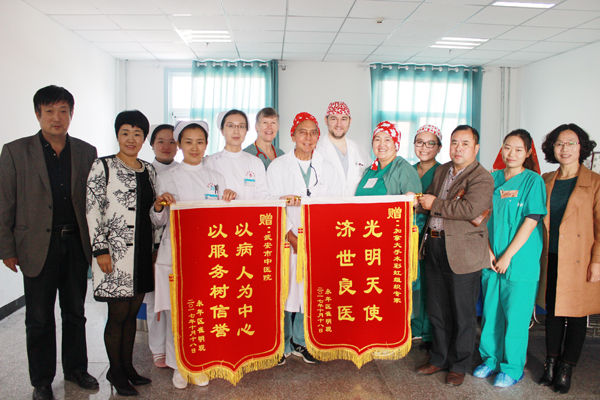 10月18日下午,患者家屬將印有“光明天使 濟(jì)世良醫(yī)”“以病人為中心 以服務(wù)樹信譽(yù)”的兩面錦旗送到了市中醫(yī)院住院四樓綜合病區(qū)唇腭裂醫(yī)辦室,表達(dá)對(duì)加拿大專家和中醫(yī)院的感激之情。