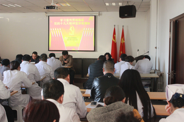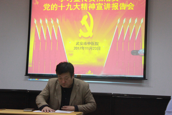 2017年11月23日,市中醫(yī)院再次掀起學(xué)習(xí)宣傳貫徹落實(shí)黨的十九大精神的熱潮,組織所有黨員及中層以上院領(lǐng)導(dǎo)開展“專題學(xué)習(xí)”活動(dòng)。活動(dòng)分為兩部分,一是召開學(xué)習(xí)宣傳貫徹落實(shí)十九大精神宣講會(huì),二是學(xué)習(xí)新《黨章》。